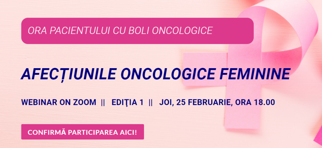Platforma DespreCancer.ro organizează joi, 25 februarie, începând cu ora 18.00, prima ediție a webinarului Ora pacientului cu boli oncologice, având tema Afecțiunile oncologice feminine.