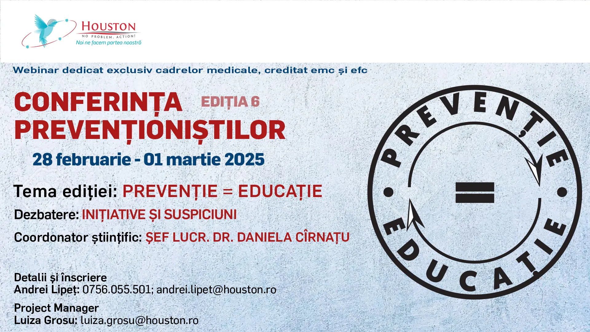 Conferința își propune să exploreze legătura dintre prevenție și educație, subliniind importanța inițiativelor de sănătate publică și provocările generate de suspiciuni și dezinformare.