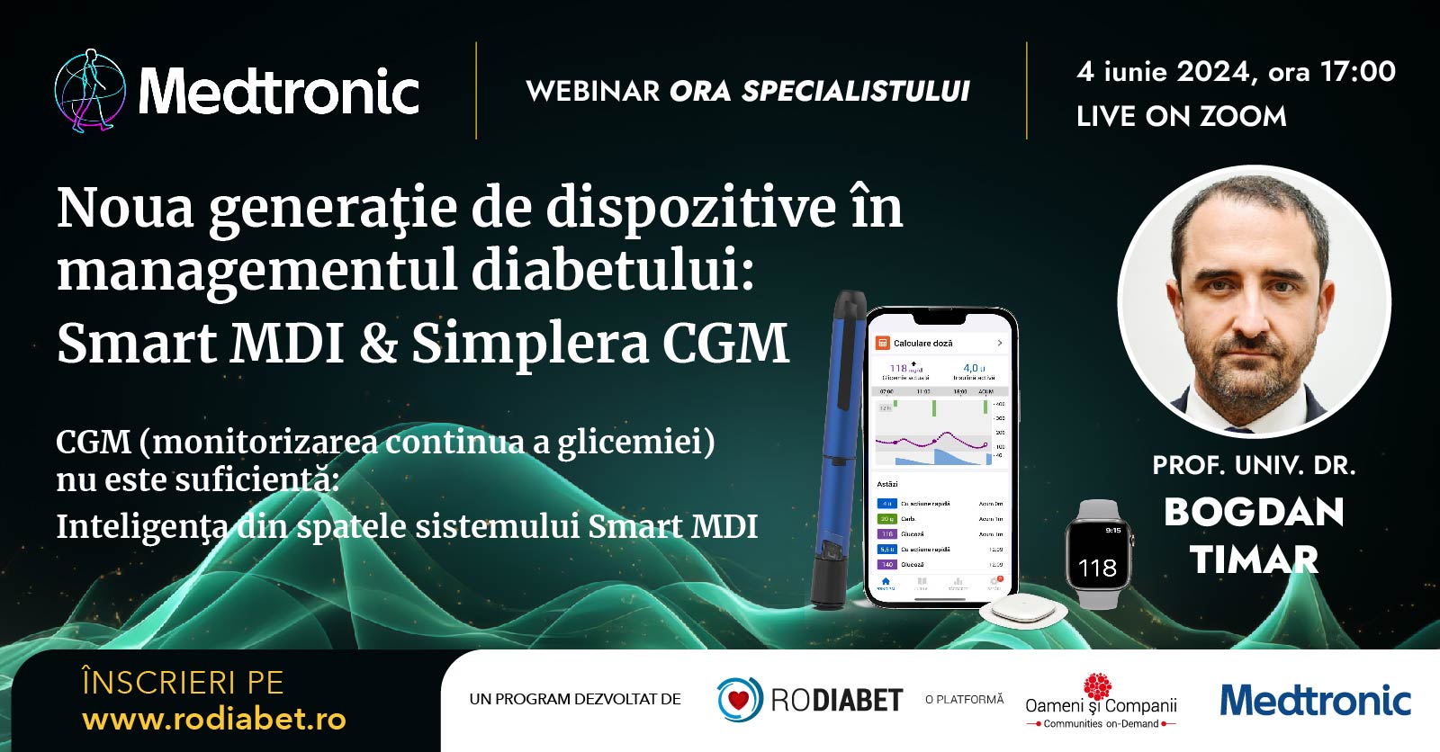 Prof. Dr. Bogdan Timar este invitatul Orei Specialistului Rodiabet din 4 iunie și ne va prezenta noua generație de dispozitive în managementul diabetului: Smart MDI & Simplera CGM. Dezbaterea are loc online, de la ora 17.00, iar înscrierile sunt deschise pe Rodiabet, aici: Ora specialistului: Smart MDI & Simplera CGM – Rodiabet.