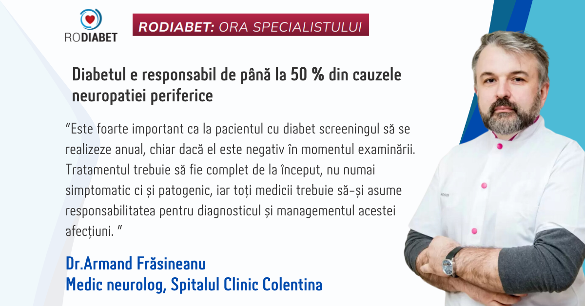 ”Neuropatia periferică dureroasă afectează peste 16% din pacienții cu diabet. Dar este important de menționat că neuropatia diabetică, chiar dacă evoluează fără durere, poate afecta atât fizic, cât și mental calitatea vieții pacienților” a declarat dr. Armand Frăsineanu, în cadrul dezbaterii profesionale Ora Specialistului Rodiabet dedicate gestionării eficace a neuropatiei diabetice.