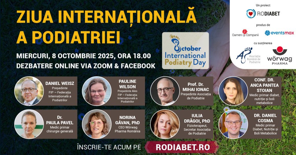 Înscrierile sunt GRATUITE și deschise aici: https://www.rodiabet.ro/ziua-mondiala-a-podiatriei-2025/.