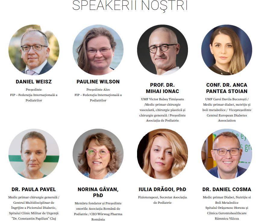 - Norina Gâvan, PhD – Membru fondator și Președinte onorific al Asociației Române de Podiatrie / CEO Wörwag Pharma România